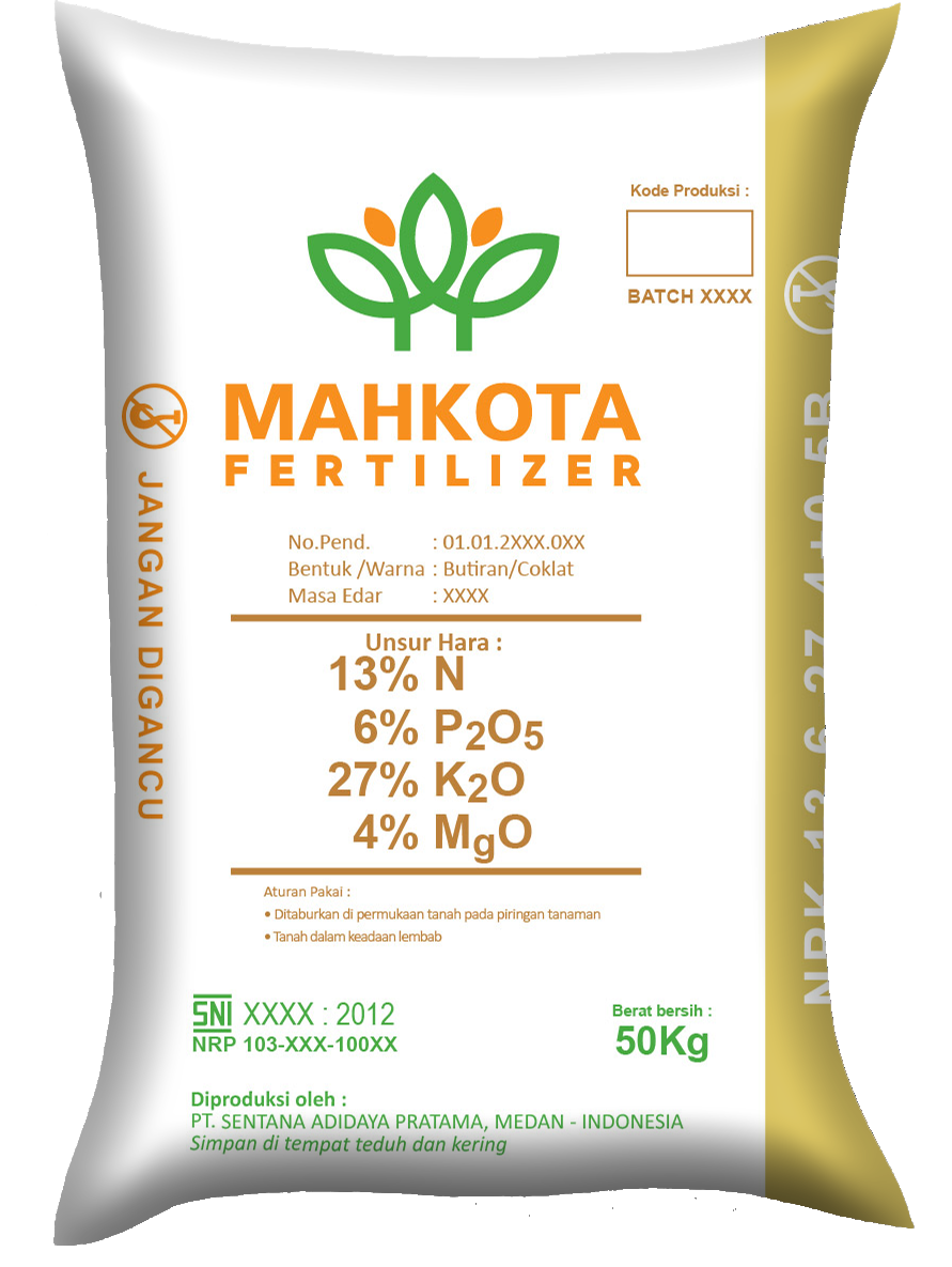 NPK Mahkota 13-6-27-4 adalah pupuk gradual release yang dirancang khusus untuk tanaman perkebunan pada fase Tanaman Menghasilkan (TM). Dengan kandungan $K_2O$ yang tinggi, pupuk ini sangat bermanfaat untuk mendukung fase generatif tanaman, mempercepat pembungaan dan pembentukan buah, serta memastikan hasil panen yang lebih optimal dan berbobot.